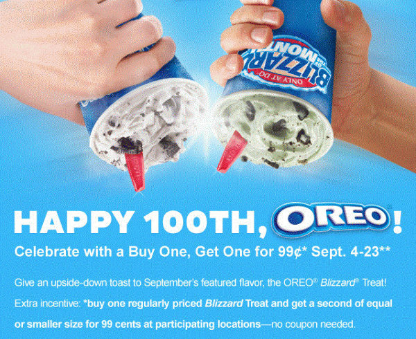 Everyday is a good day for a blizzard from Dairy Queen! And right now they have a great deal to share with a friend or loved one…Buy One, Get One Blizzard for 99 cents!