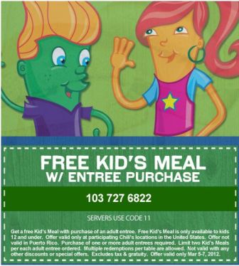 Please keep in mind that there is a limit of 2 FREE kids meals per adult entree. Coupon only valid March 5th-7th.