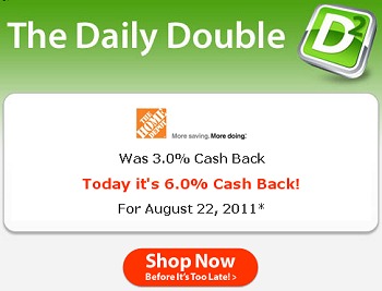 Each Day, Ebates also offers 1 site with DOUBLE CASH BACK for serious savings – such as Today’s Daily Double offer of 6% Cash Back at Home Depot !