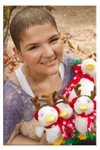 This year, Aflac held a contest among the patients at the Aflac Cancer Center in Atlanta to determine who would design the 2012 Holiday Duck. Sixteen year-old Monica Sandoval, (shown in the picture above) from Winder, GA, was the winner. Monica, who has battled leukemia for 4 years, is thrilled to have had her design selected and hopes that everyone will be inspired to purchase the 2012 duck to raise money and awareness for childhood cancer.