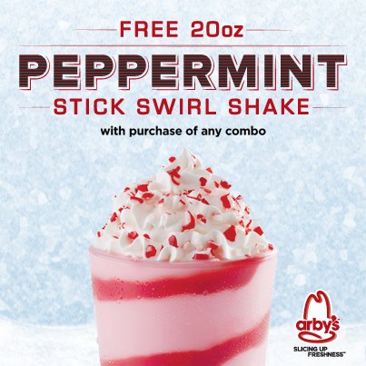 Yum!! My mouth is already watering thinking about the new Peppermint Stick Swirl Shake from Arby’s. And for a limited time, you can get a FREE 20oz shake with purchase of any combo! Simply print off your coupon here!! Let us know if you try one! Hurry though, as this offer ends 11-13-2012.