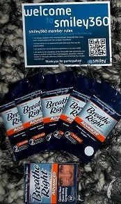 I received this great freebie package (shown above) from Smiley360to test out and share with you all and a limited number of FREE Breathe Right strips are reserved on a “While Supplies Last” basis through my link HERE.