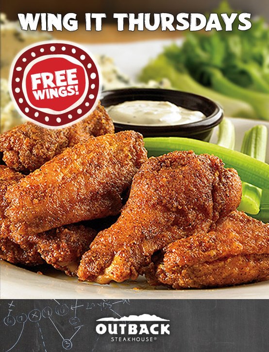 REMINDER: Stop by Outback Steakhouse TODAY, and get an order of FREE Wings!! Today is the last day for the offer đ