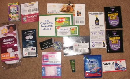 I’ve posted several pics of my mailbox freebies this week in our “Mailbox Freebies” Album on Facebook – but here’s what I got in the mail Friday & Saturday! It was definately my week to get Coupons for FREE Items! I got Coupons to get FREE John Frieda Foam HairColor, FREE 5 Count pk of Zyrtec, FREE Purina Pro Plan Roasted Slices and I also got the following Free Samples that came with Coupons: