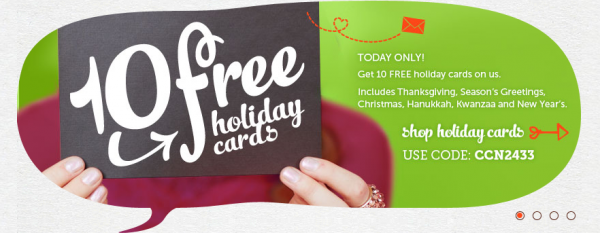 Woo hoo!! Here is a deal you won’t want to miss…TODAY ONLY ( 11-8-2012 ) you can get 10 FREE Holiday Cards + FREE Shipping from Cardstore!!