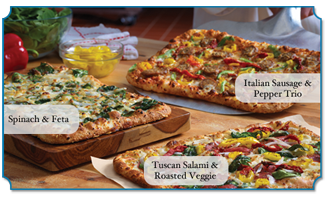 ~One (1) free Artisan pizza per person. The approximate retail value of an Artisan pizza is $7.99~ Choose from 4 different kinds: the NEW Chicken & Bacon Carbonara, the Spinach & Feta, the Tuscan Salami & Roasted Veggie, or the Italian Sausage & Pepper Trio.