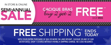 They have so many awesome deals running, I’ve compiled them into separate sections for you! They are also running a FREE Shipping promo – and don’t forget that Lane Bryant has so many sister sites under the same umbrella – so you get 7 sites in-one including Cacique, Fashion Bug, Catherines and more!