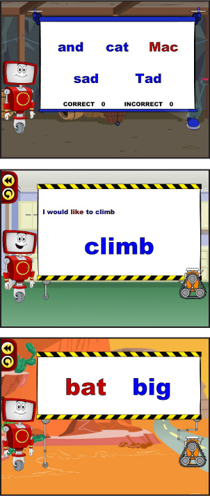 This area uses the letter sounds and word blends previously learned forming new words and builds the ability to read complete English sentences and short stories with ease. The story reading exercise contains the equivalent of dozens of children’s early reading books.