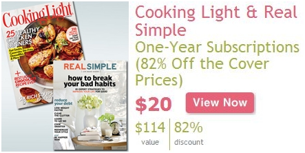 Includes 12 Issues of Cooking Light and Real Simple just $20 – REG $11