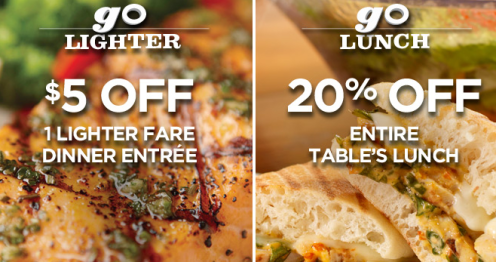 Right now you get take advantage of TWO great offers: $5/1 Lighter Fare Dinner Entree AND 20% Off Entire Table’s Lunch. Both coupons are valid through January 10th ( 1-10-2013 ), so you’ll need to plan to use them soon! Also, be sure to read the fine print on each coupon for exclusions. Click here to find an Olive Garden restaurant near you!
