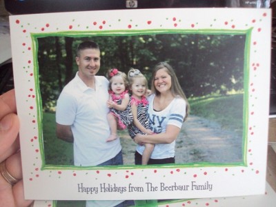 Red and green speckles surround a green border on this gorgeous photo card. I used a picture of my best friend and her family (shown above) to create their unique photo card. And something that really stood out about this company, is the attention to detail. They wrapped my cards in a beautiful green ribbon and even included a small, but very sweet gift (to/from cards). It really showed me how much this company truly cares about their customers. 😀
