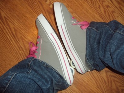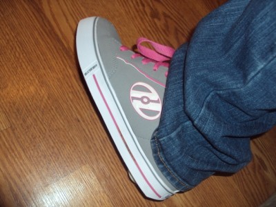 First, I just want to say that the website itself is very user friendly and will give you every detail (from the colors you want to the how-to’s) to each of their consumers. For this particular review, I was sent my very own pair of Heely’s in the color/size of my choice. There are so many stylish shoes to choose from! I decided to order the original shoes in the “Wave” style (shown in colors gray/pink).
