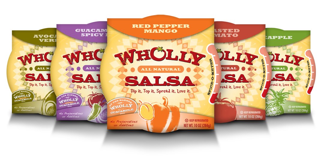 The new Wholly Salsa® flavors focus on current trends in restaurants and food service. From traditional tomato based salsas to fruit-based salsas, these products were developed to enhance meals, such as chicken, shrimp or pasta. The new specialty flavors include: Pineapple, Red Pepper Mango, Roasted Tomato, Avocado Verde and Guacamole with Spicy Pico.